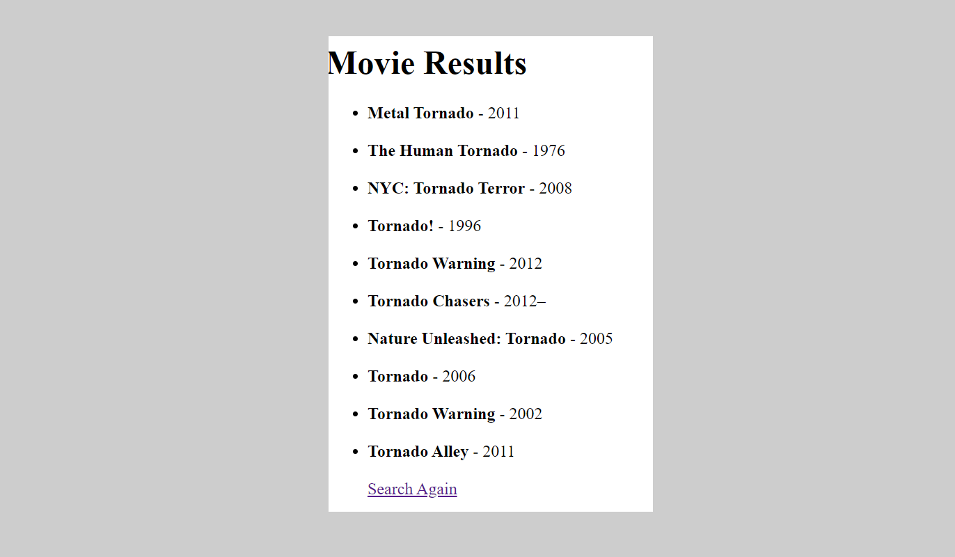 Pass input value from user to IMDB Movie API and return all matching movie data
